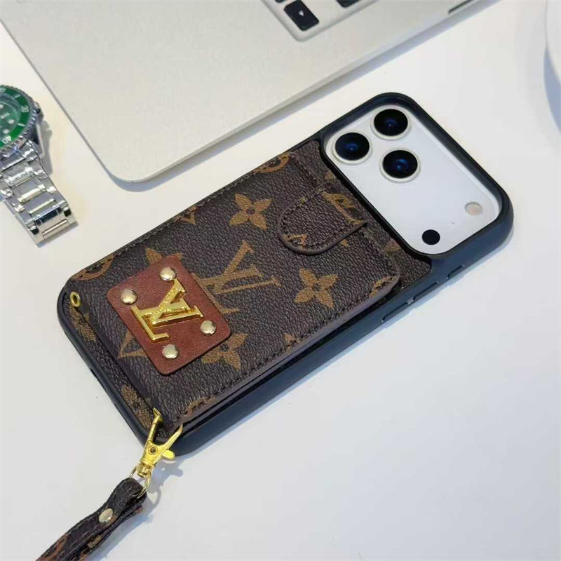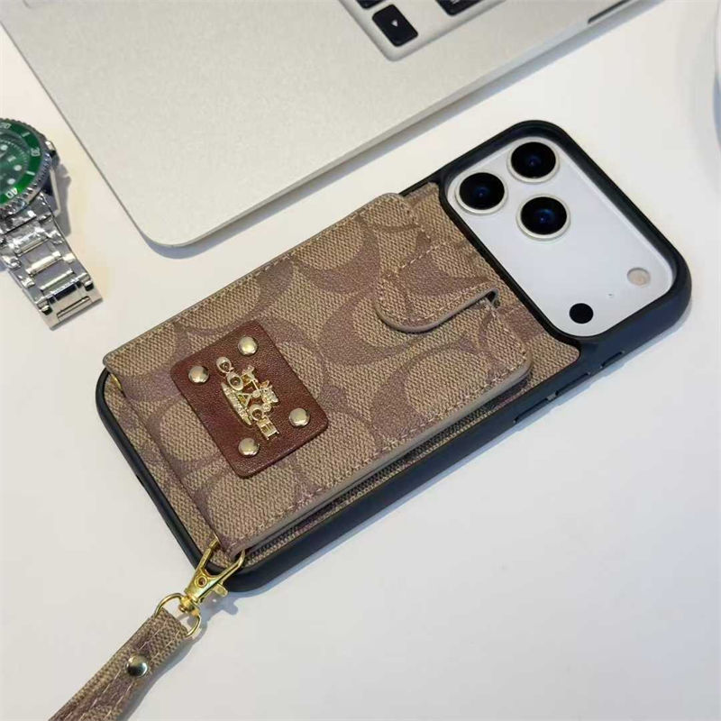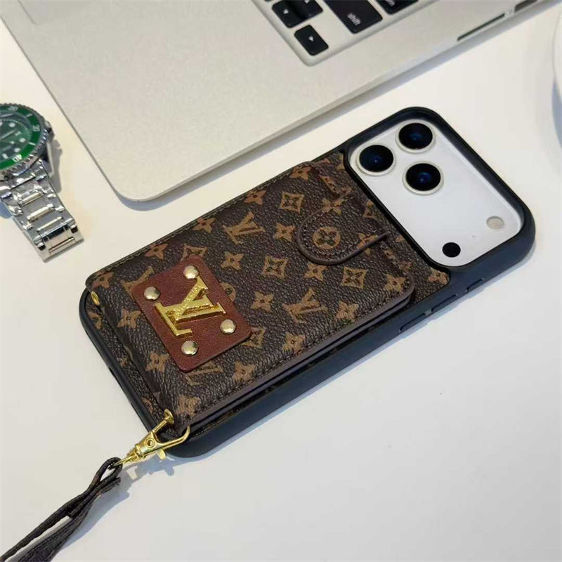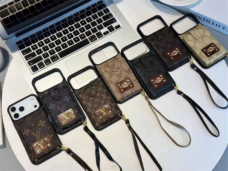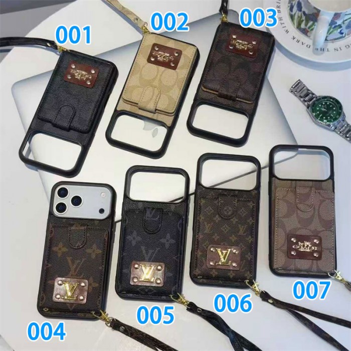 ブランド風カードポケット付きストラップ iPhone7 iphone15 16 17 およびサムスン S20 S21 S24 S25 対応スマホケース