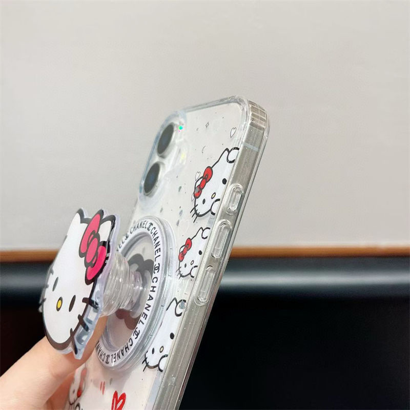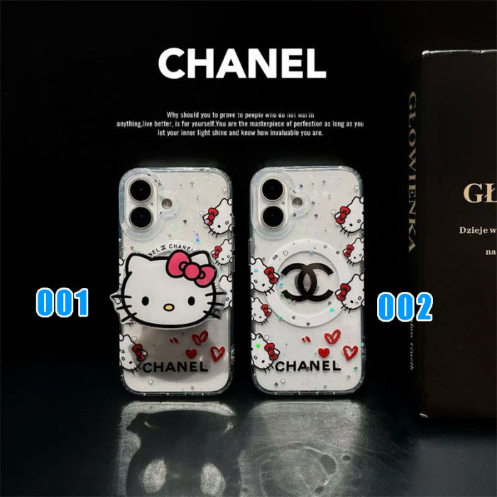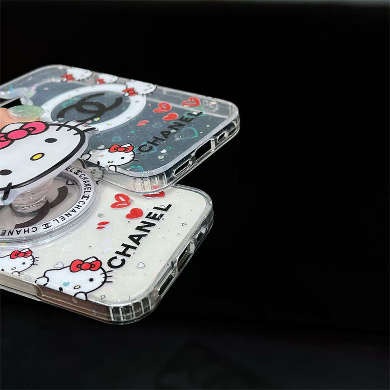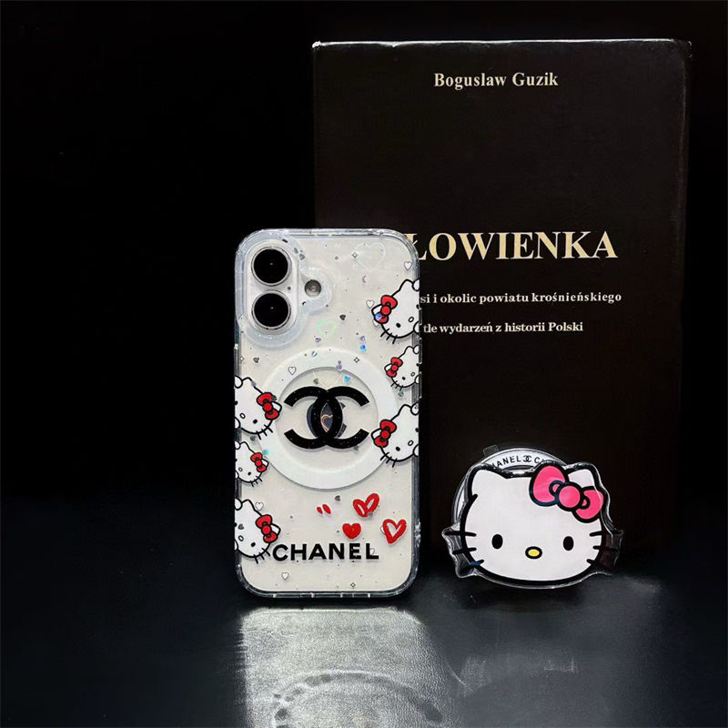 シャネル風 Hello Kitty コラボポップソケットクリア iPhone17 13 スマホケース 可愛らしさとラグジュアリーを融合した保護アイテム