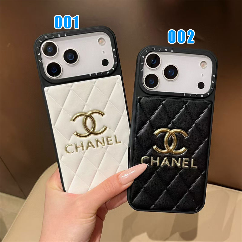 シャネル風クォイルステッチゴールドロゴ iPhone17 12 16 スマホケース クラシックなラグジュアリーと実用性を両立した保護アイテム