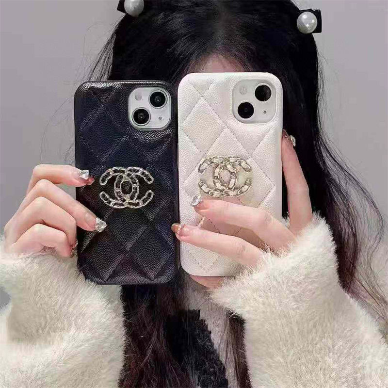 シャネル風チェーンダブル C ロゴクォイルステッチ多色 iPhone17 11pro スマホケース ラグジュアリーなディテールと柔らかなカラーを両立した保護アイテム