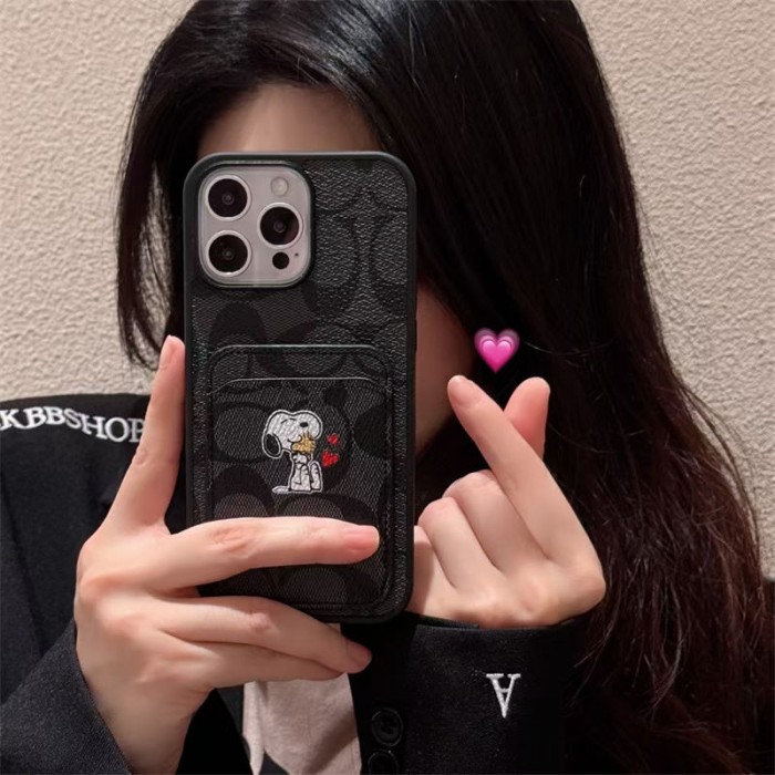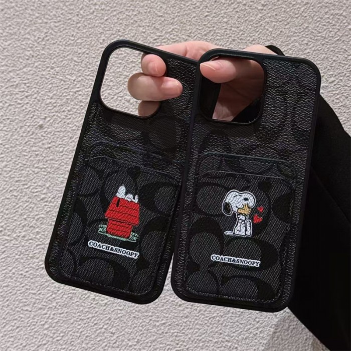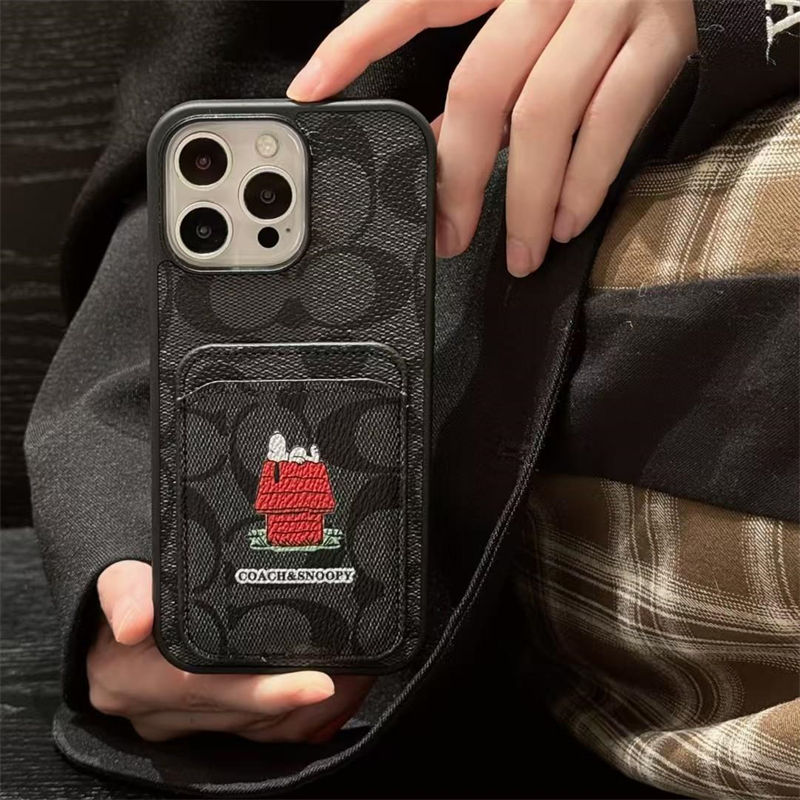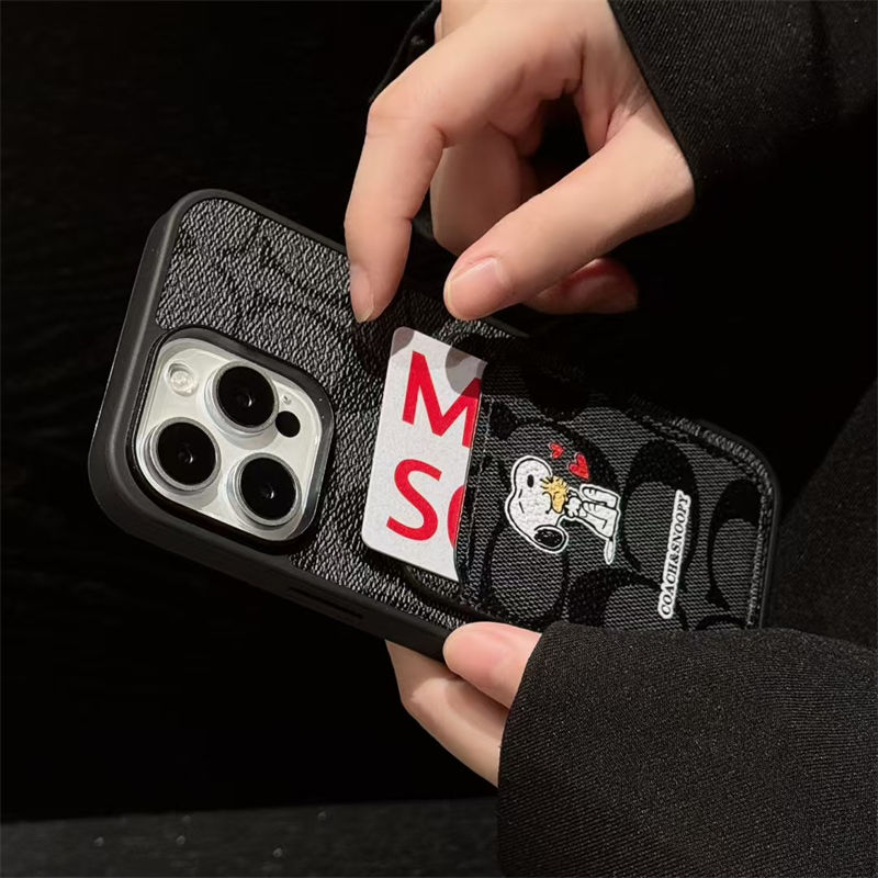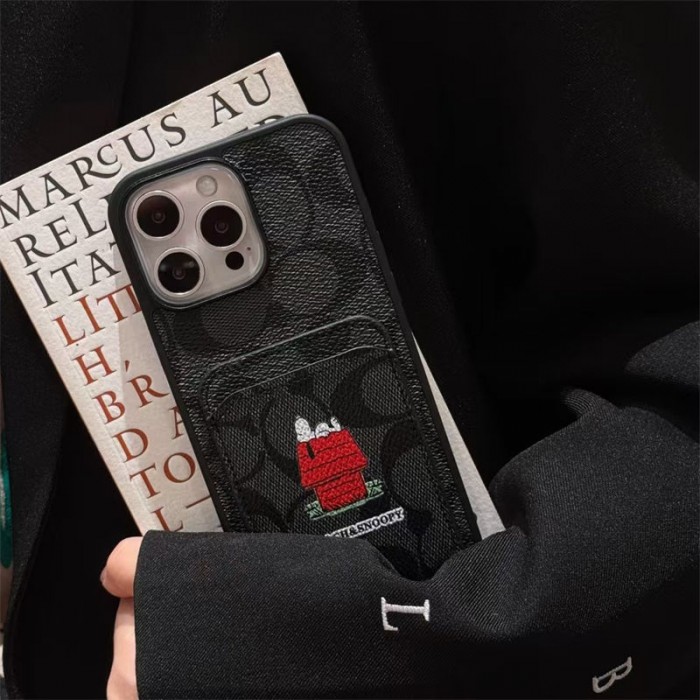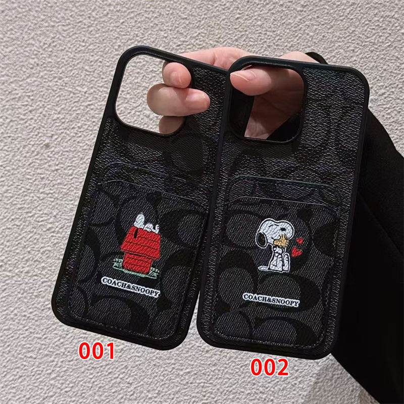 Coach×Snoopy コラボモノグラムカードポケット付き iPhone7 - 17 スマホケース 可愛らしさと高級感を融合したファッションアイテム