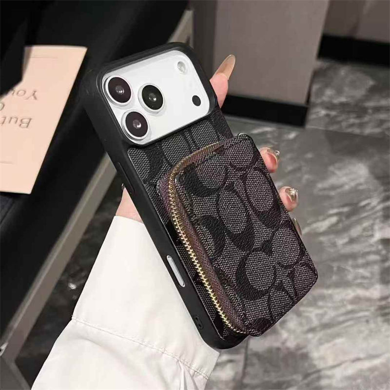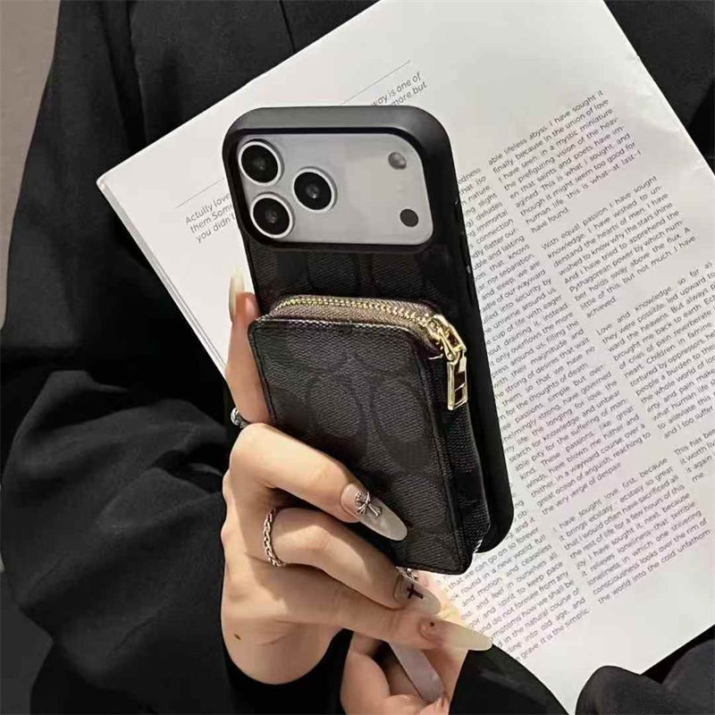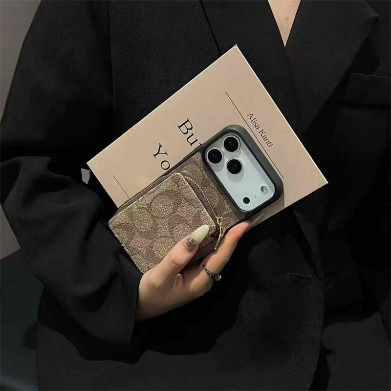 Coach 風モノグラムジッパーカードポケット付き多機能 iPhone17 11 スマホケース galaxy s25 s24 s23高級感と実用性を融合したファッションアイテム