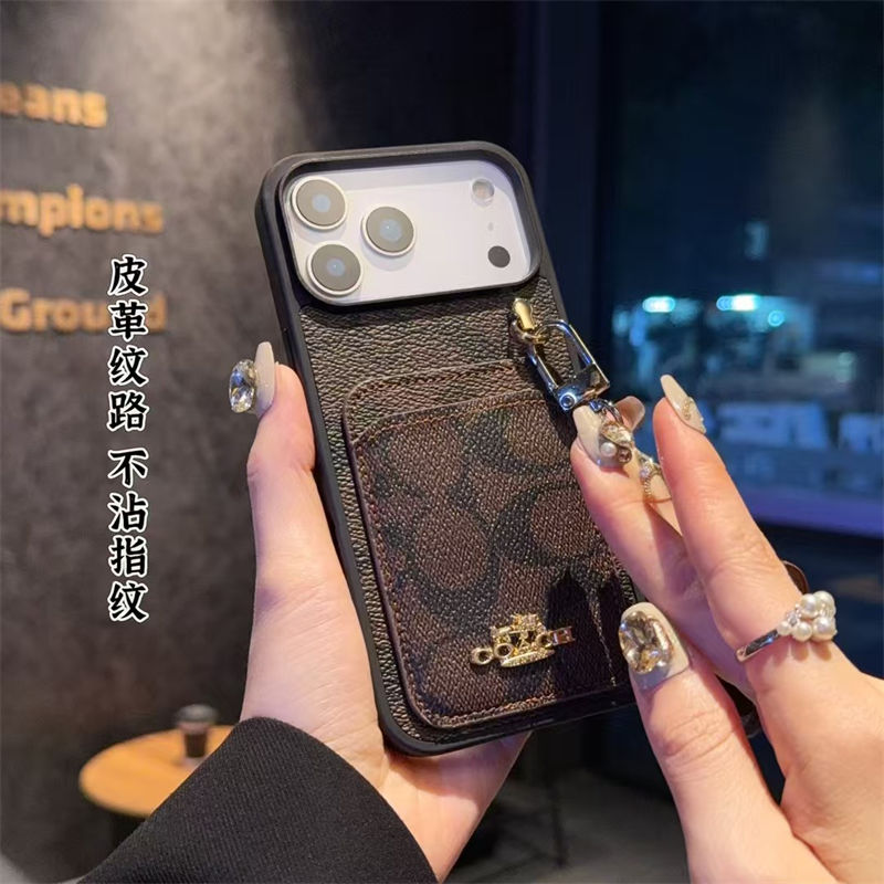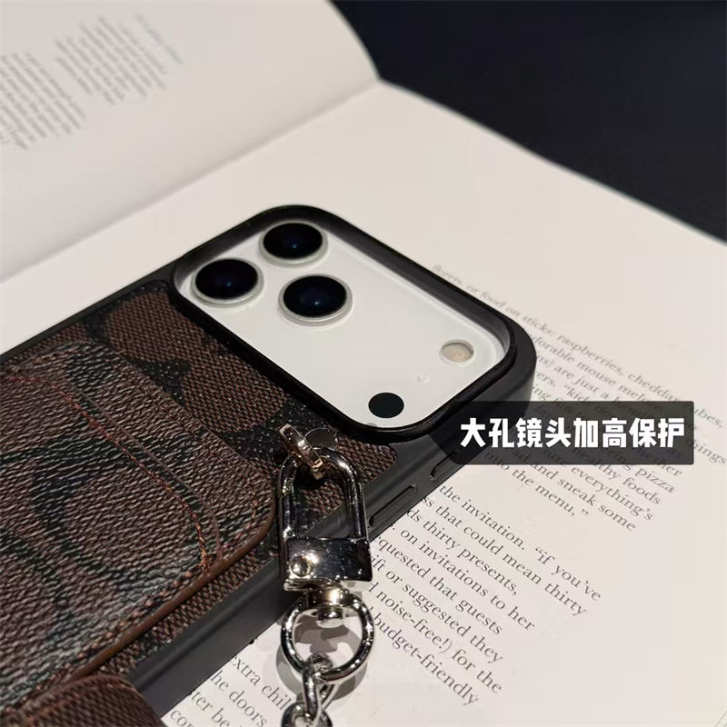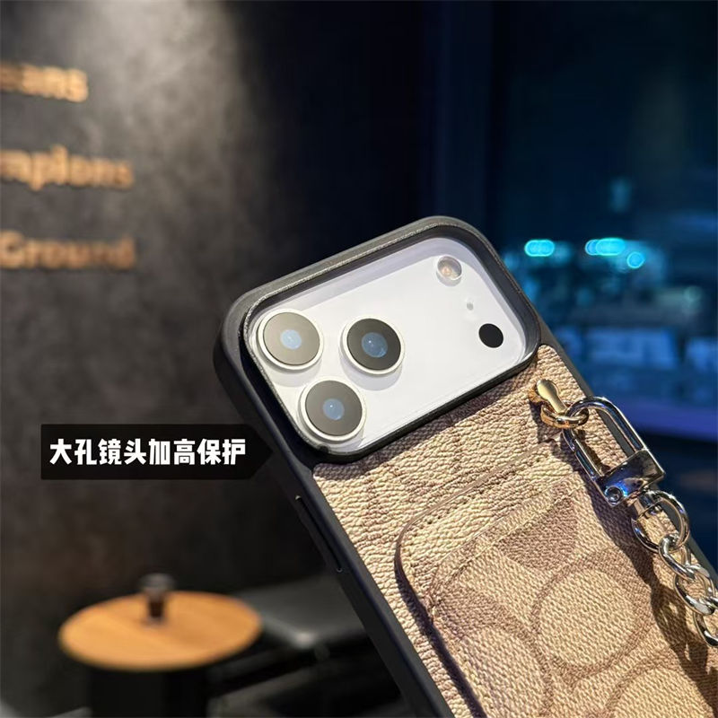 Coach 風モノグラムチェーンミニバッグ付き多機能 iPhone17 16 15 スマホケース 高級感と実用性を融合したファッションアイテム