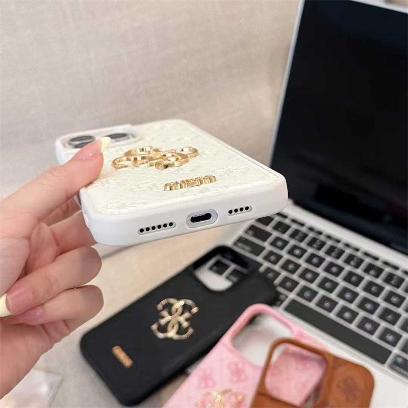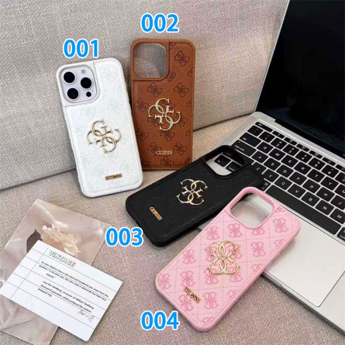 GUESS 風刻印ロゴ多色 iPhone ケース iPhone16/17 対応、ファッションと実用を両立した高級感保護アイテム