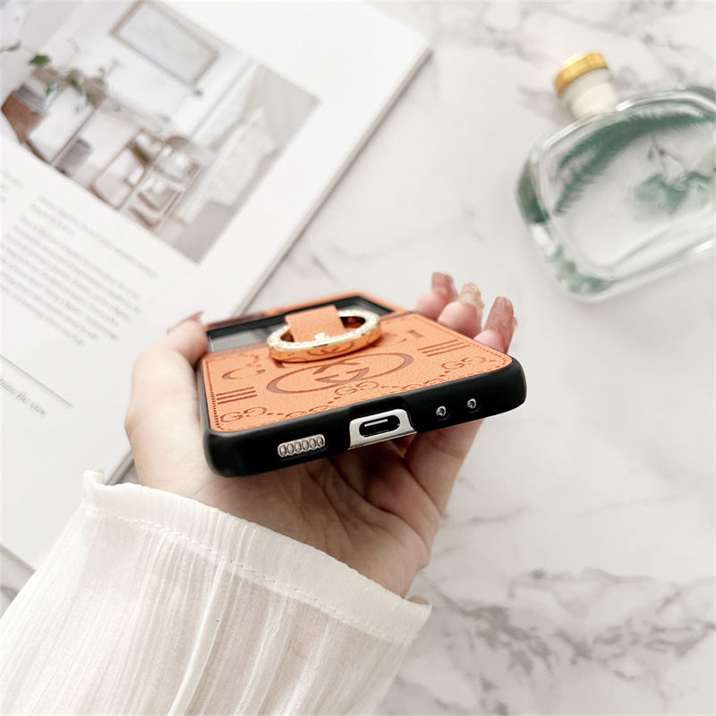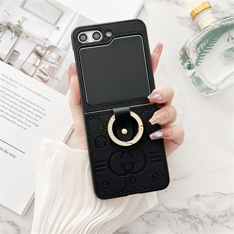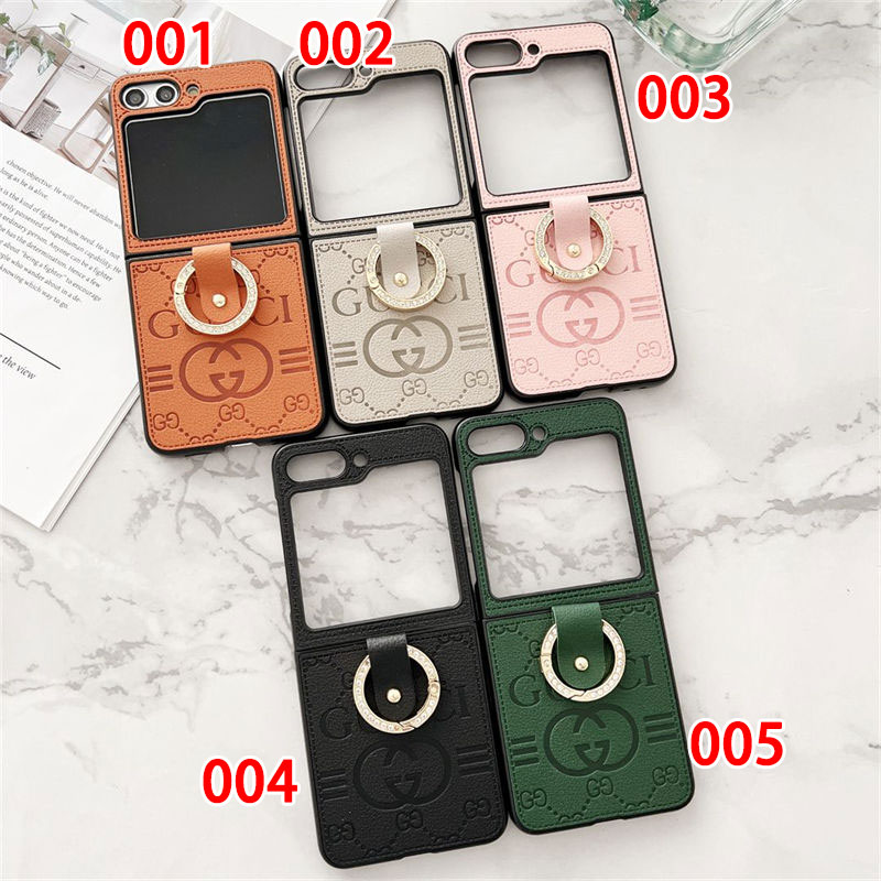 Gucci 風モノグラムリングホルダー付き多色 Galaxy Z Flip7 6 5 スマホケース ラグジュアリーなディテールと折りたたみ端末向け実用性を融合したアイテム