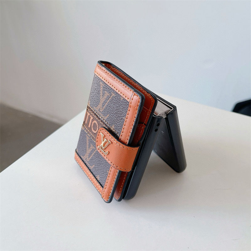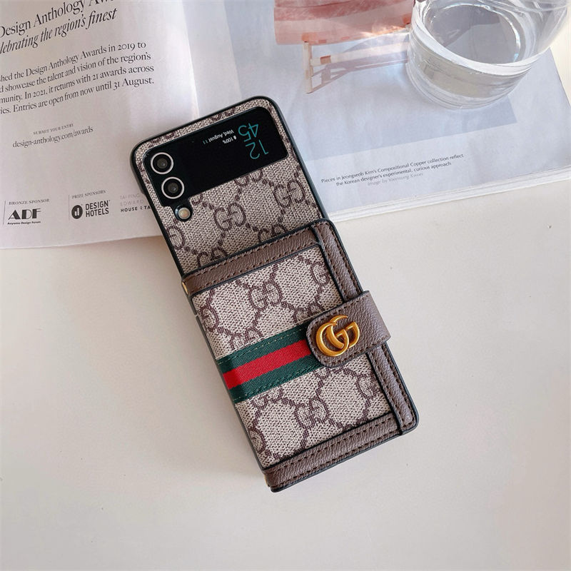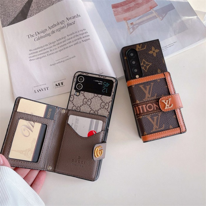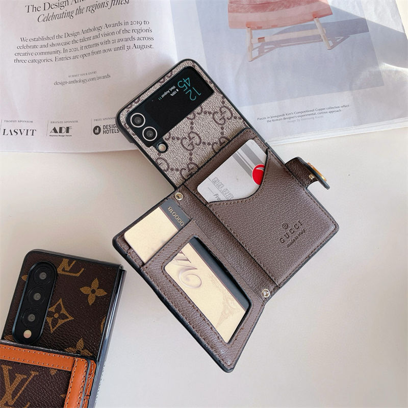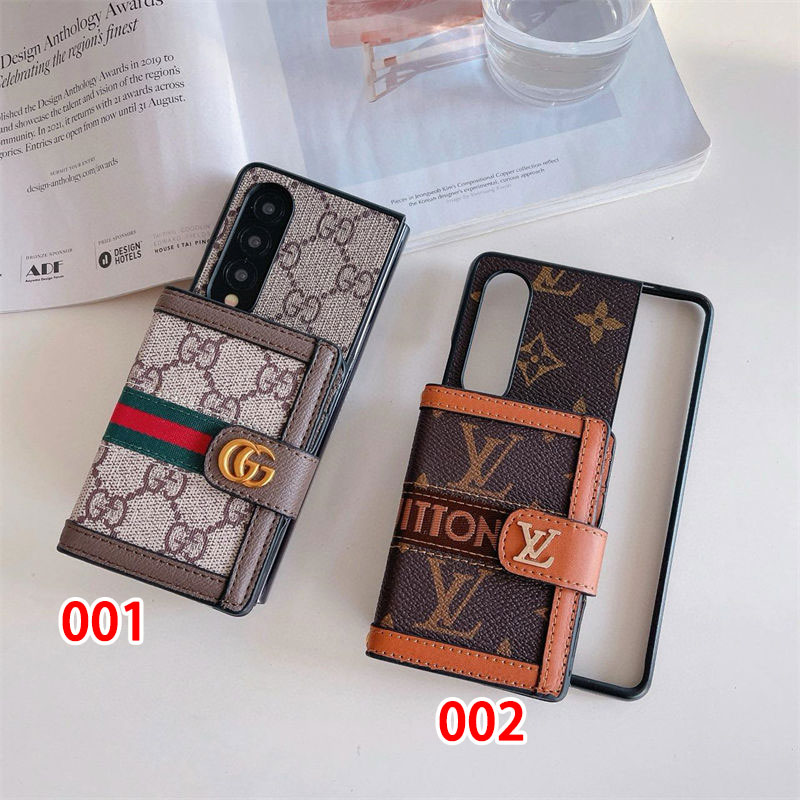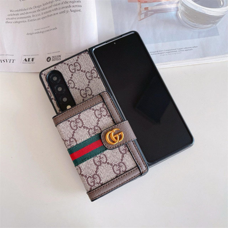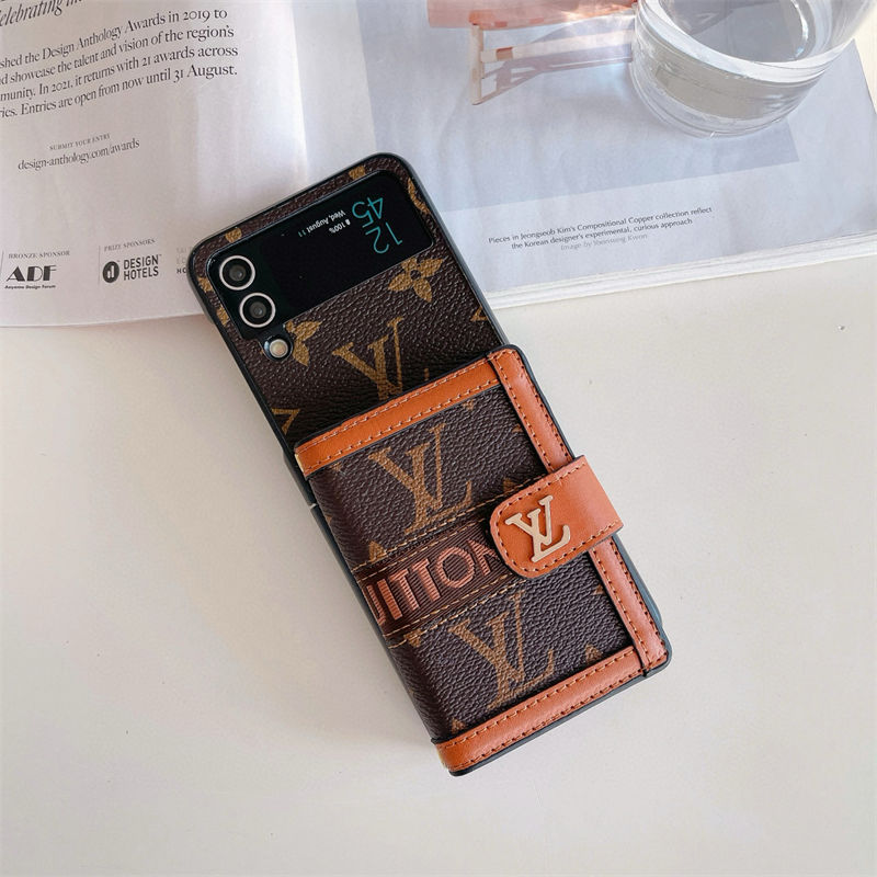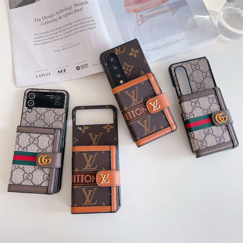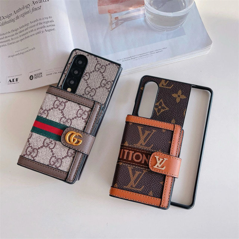 ブランド風モノグラムマルチポケット付き Galaxy Z Fold7 6 5/Z Flip7 6 5 多機能スマホケース ラグジュアリーなデザインと折りたたみ端末向け実用性を融合したアイテム